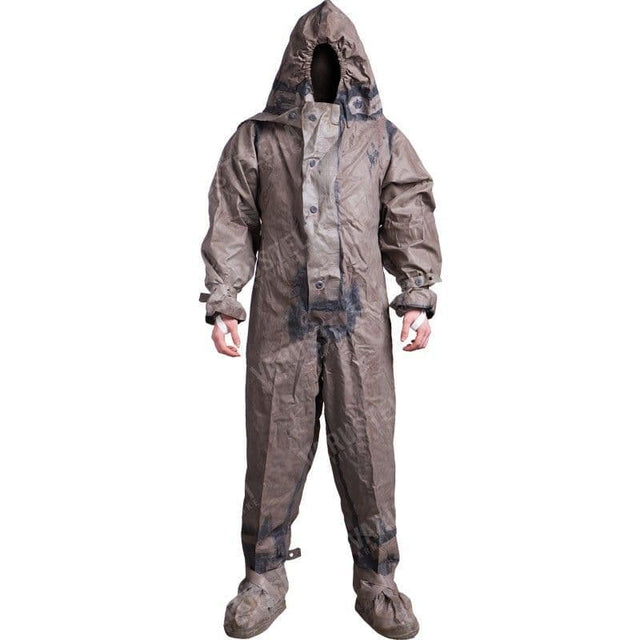 The perfect item for your collection of military surplus items, this East German NBC Suit is a great Cold War collectibles item, which is fully waterproof and includes built-in boots. The East German Full NBC Suit is fully waterproof and made from heavy duty rubber, making it perfect for emergency survival and virus protection. This full body suit includes built in boots, elastic wrists and hood for full protection.