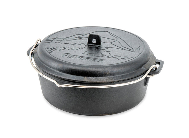 The Petromax Dutch Oven - Essential Line offers a perfect blend of traditional craftsmanship and modern practicality for outdoor cooking enthusiasts. Made from robust cast iron, this Dutch oven excels at heat retention and even distribution, making it ideal for preparing hearty stews, crusty breads, and tender braised dishes over a stovetop, grill, or open fire.