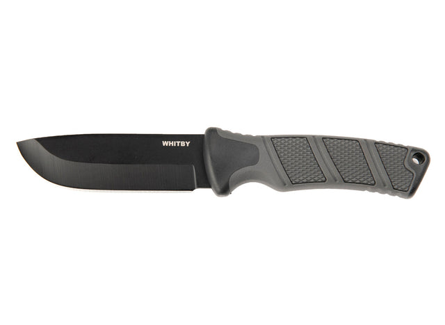 The knife features a sleek grey TPR handle that offers a comfortable and secure grip, ensuring precision and control during use. Weighing just 123g (knife only) and 173g (including sheath), it is lightweight and easy to carry, making it a must-have for camping, hiking, and survival situations.