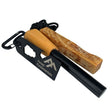 The handle is crafted from hardwood, wood-turned and hand-finished for a comfortable ergonomic grip. Sanded smooth and sealed with natural wood oil, it resists moisture while showcasing the natural beauty of the grain. Each kit also includes a sustainably sourced fatwood stick, prized for its natural resin content, water resistance, and ability to ignite easily, making it the perfect tinder companion.