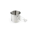 The wire handles of this cup can be folded flat to save space during transportation and then extended for easy cooking or added convenience. This feature not only enhances its practicality but also provides a secure grip to prevent accidents while preparing meals near water bodies.