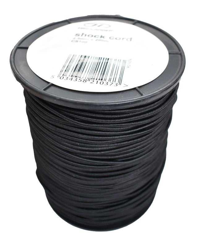The Highlander Black Shock Cord - 2.5mm x 1m has many different uses and is a must have piece of gear! Perfect for replacing the shock cord in your tent poles or repairing broken elastics in combat smocks and hoods, the uses are endless with this shock cord from Highlander. This shock cord is sold in 1m intervals.