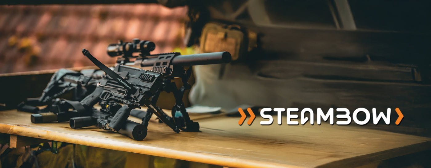 Every Steambow crossbow package includes essential accessories such as high-quality bolts, adjustable grips, and Picatinny rail systems for complete customisation. From the field to the range, these versatile crossbows adapt to your needs, offering compact storage, quick reloads, and superior shooting comfort. Discover the next generation of tactical crossbows and experience unmatched speed, control, and craftsmanship.