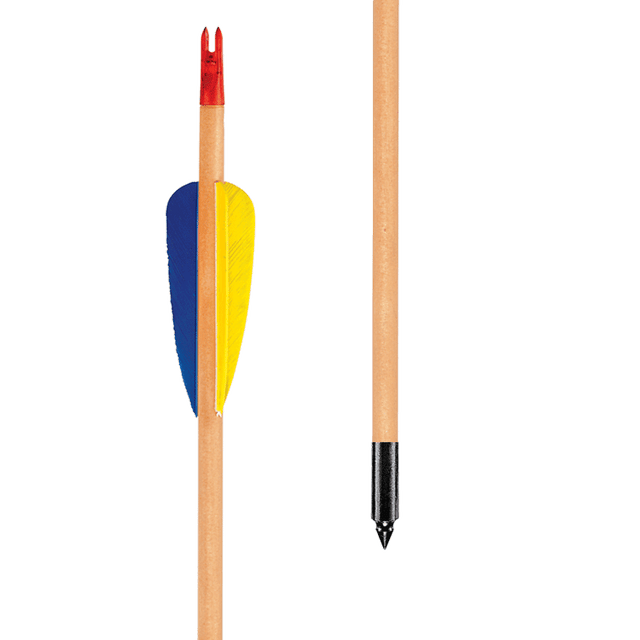 If you are looking for the perfect arrows to pair with your youth bow, look no further than the EK Archery Black Point Natural Wooden Feather Arrows 30" - Pack Of 3. Constructed from natural wood, these arrows from EK Archery are designed to be strong, durable and long lasting. Each arrow comes complete with a black pointed end as well as a bright yellow and blue vane so it is easily detectable when out in the field. These arrows come as a handy pack of three so you can spend hours on end practising your aim!