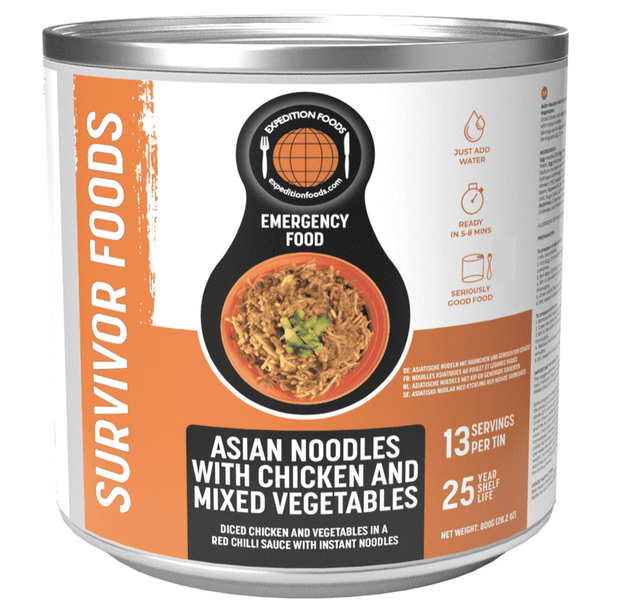 Expedition Foods Freeze Dried Meal Tin Asian Noodles with Chicken and Mixed Vegetables - 13 Servings