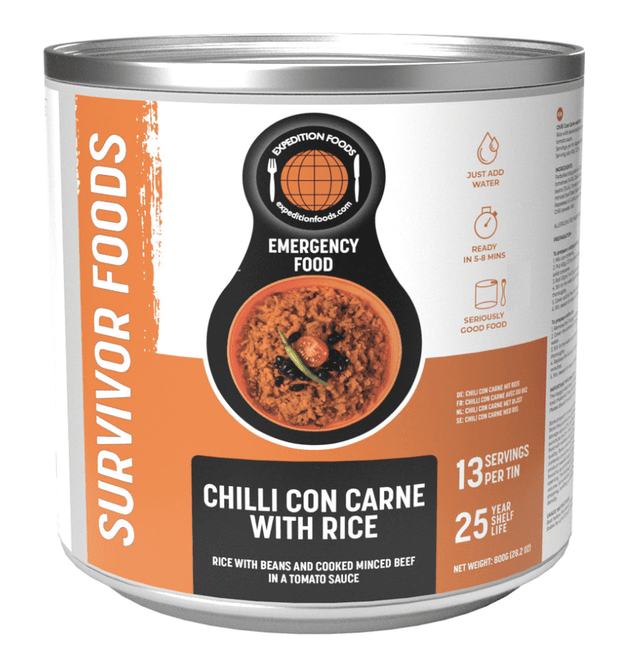 Expedition Foods Freeze Dried Meal Tin Chilli Con Carne with Rice - 13 Servings