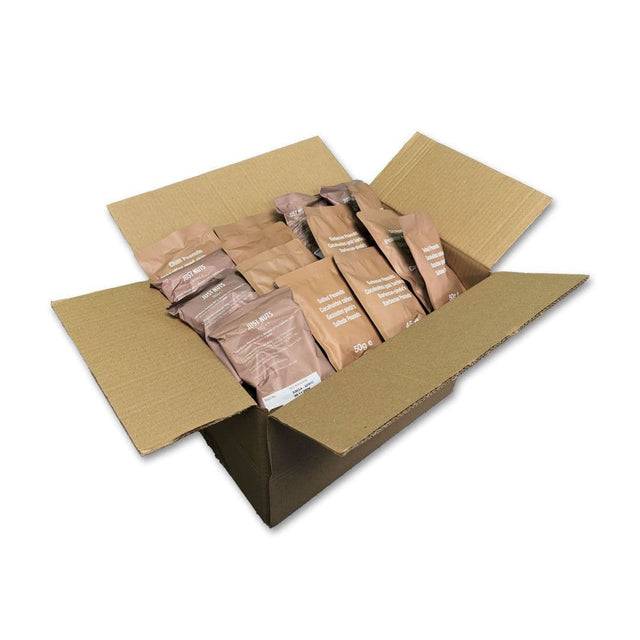 This pack of 50 x British Military Bulk Buy Ration Pack Nuts is a great starter prepping pack. Containing 50 British army nut packs in your favourite flavours!