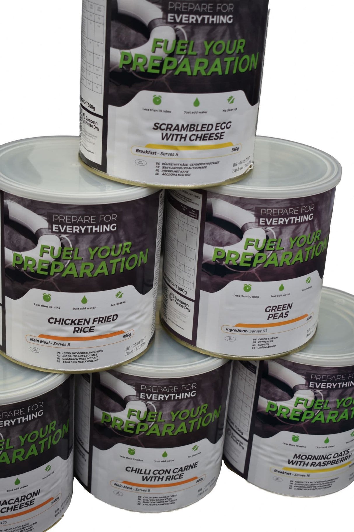 - 1 x Fuel Your Preparation Freeze Dried Food Ration Meal Tin - Scrambled Egg With Cheese - 8 Servings