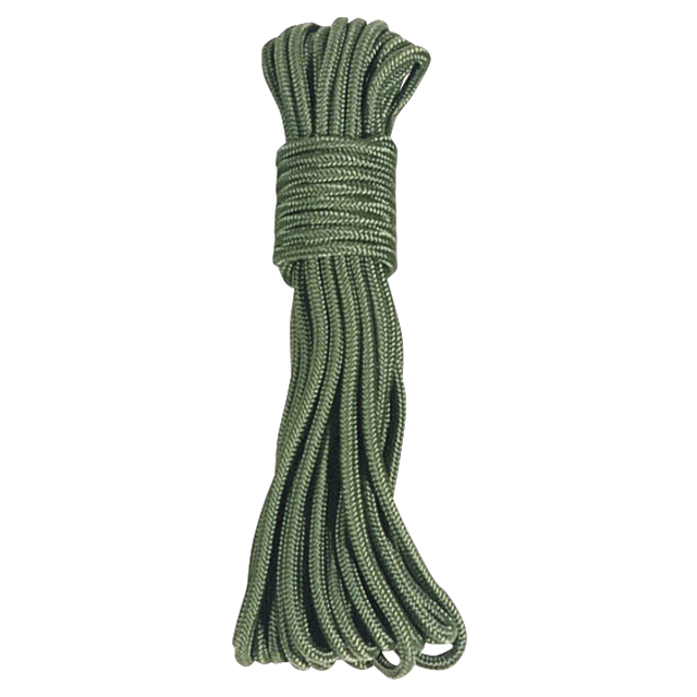 The Mil-Com Purlon Utility Rope - Green is a durable, multi-purpose cord ideal for outdoor use, camping, bushcraft, boating, and general utility work. Designed for reliability and ease of handling, this 15 m (50 ft) rope is perfect for securing shelters, tying down gear, or general campsite use.