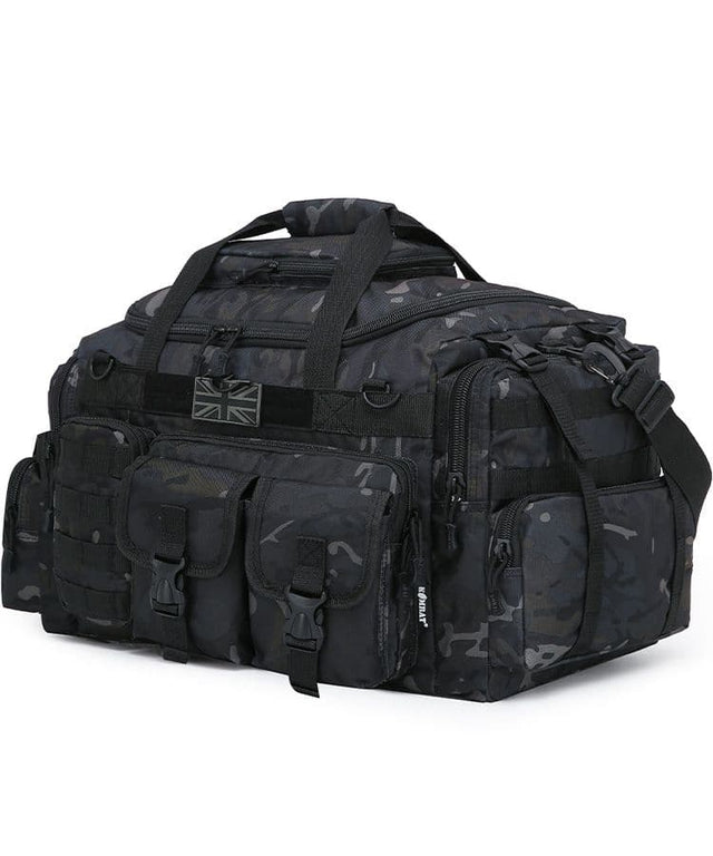 Introducing the Kombat UK Saxon 50 Litre Holdall Bag in the sleek BTP Black design. This versatile holdall is perfect for outdoor enthusiasts, travellers, and tactical professionals alike.