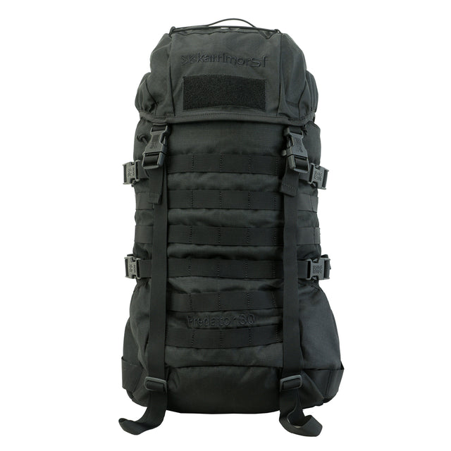 The Karrimor SF Predator 30 Day Sack is a lightweight and highly efficient day sack designed for outdoor adventures. Equipped with modular webbing (MOLLE), this pack allows for versatile attachment of various pouches. It features the capability to carry longer items like skis on the sides. The pack boasts elasticated side pockets and a zipped lid compartment, making it suitable for short patrols and extended excursions when enhanced with modular pouches.