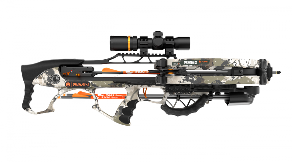 The Ravin LLC R26X XK7 Compound Crossbow - Camo delivers unmatched precision, power, and stealth in a compact, ready-to-hunt design. Building upon the proven R26 platform, this upgraded model features Ravin’s innovative High Speed HeliCoil® Technology and a Fully-Integrated Silent Cocking System for quiet, effortless operation in the field.