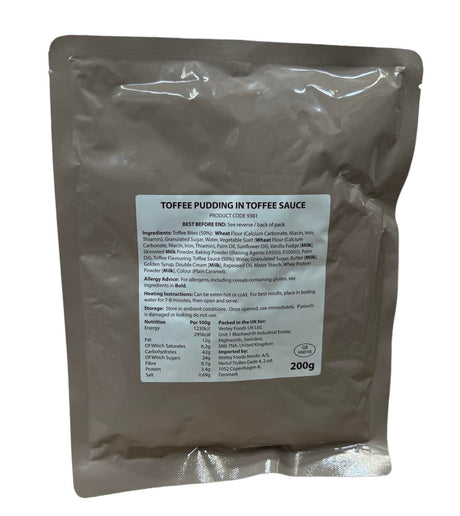 British Military Ration Main Meal Pouch - Toffee Pudding In Toffee Sauce 200g