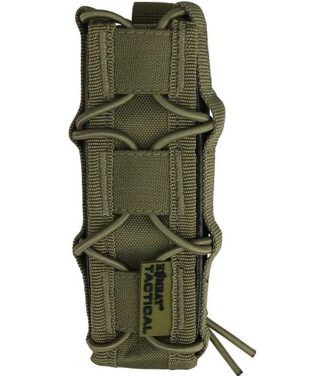 The pouch is Molle compatible, allowing you to easily attach it to other Molle systems using Kombat mole fixings at the rear. It features an adjustable bungee retention system that ensures a snug fit for your magazines, keeping them securely in place even during rigorous activities.