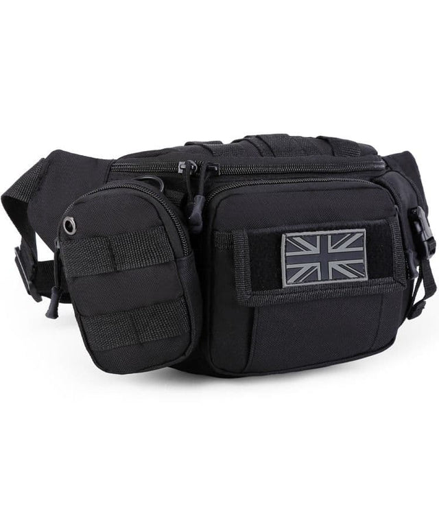 Introducing the Kombat UK Delta Waist Bag in sleek black, designed for adventurers who value convenience and functionality. This versatile waist bag offers a range of compartments and pockets to keep your essentials organised and easily accessible on the go.